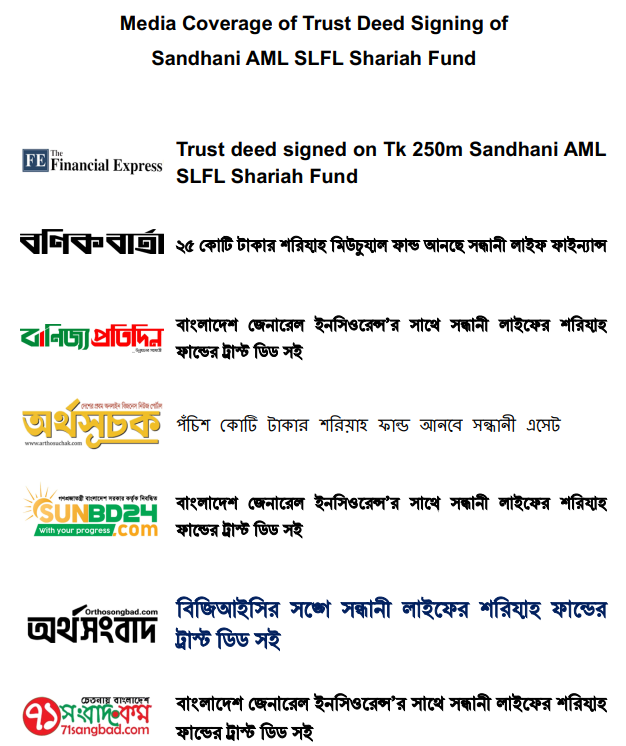 Media Coverage of Trust Deed Signing of Sandhani AML SLFL Shariah Fund